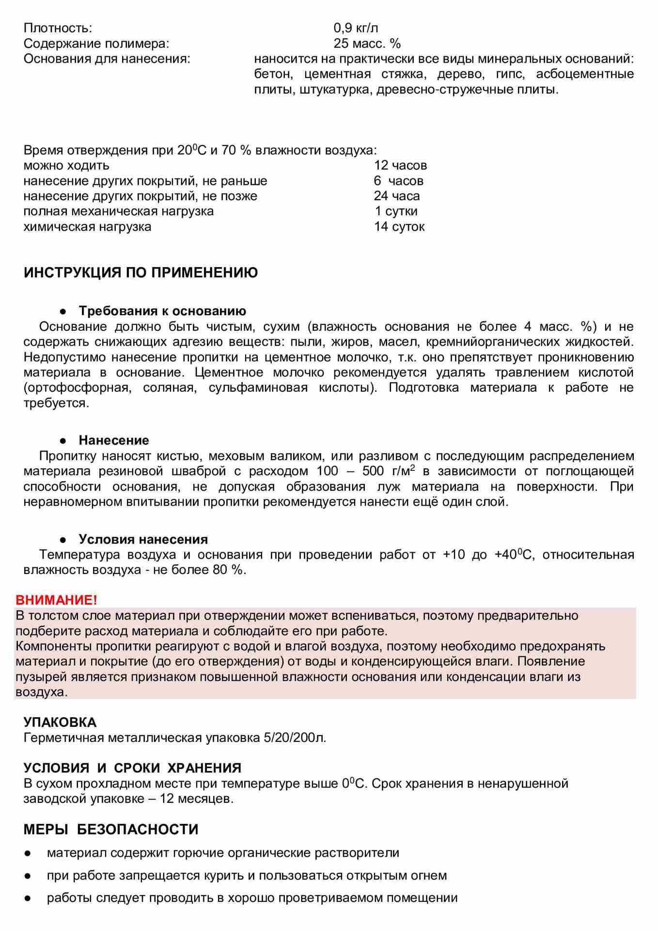 Полиуретановая однокомпонентная грунтовка для пористых минеральных поверхностей и дерева. Отверждается влагой